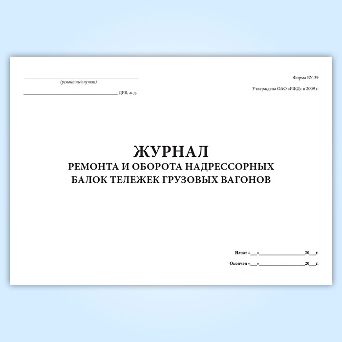 Журнал ремонта и оборота надрессорных балок тележек грузовых вагонов (форма ВУ-39) в Фрязино купить