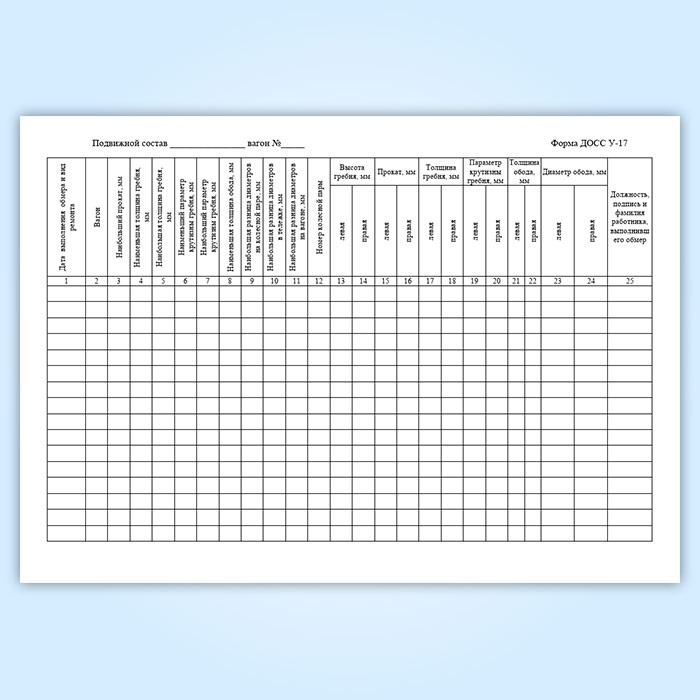 Книга состояния колесных пар скоростных/высокоскоростных электропоездов (форма ДОСС У-17) в Фрязино купить