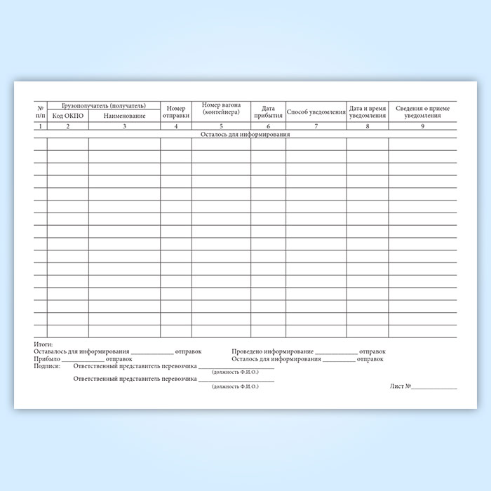 Книга уведомления о прибытии груза, порожнего грузового вагона (форма ГУ-6ВЦ/Э) в Фрязино купить