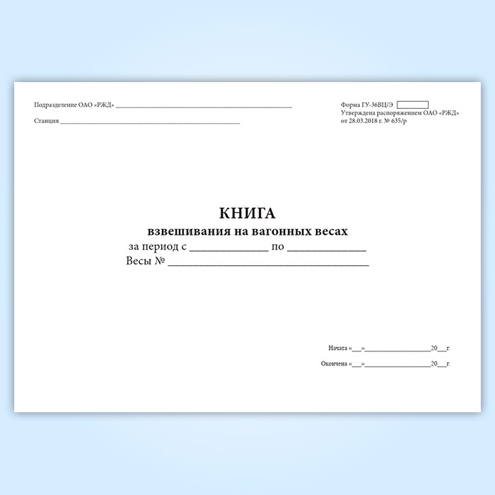 Книга взвешивания на вагонных весах (форма ГУ-36ВЦ/Э) в Фрязино купить