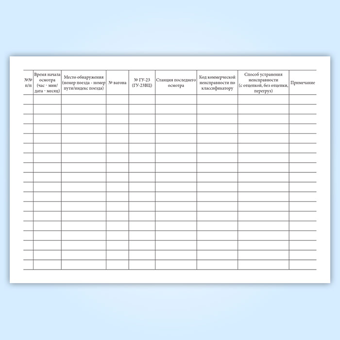 Книга регистрации коммерческих неисправностей вагонов в поездах в пунктах коммерческого осмотра (форма ГУ-98ВЦ) в Фрязино купить