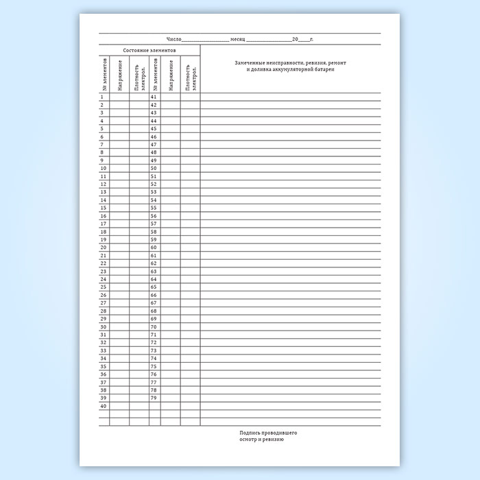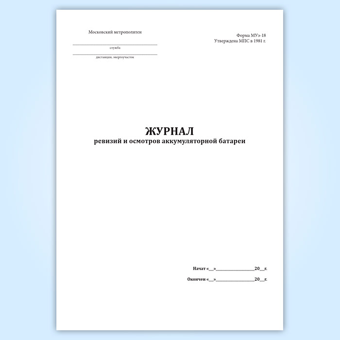 Журнал ревизий и осмотров аккумуляторной батареи (форма МУэ-18) в Фрязино купить