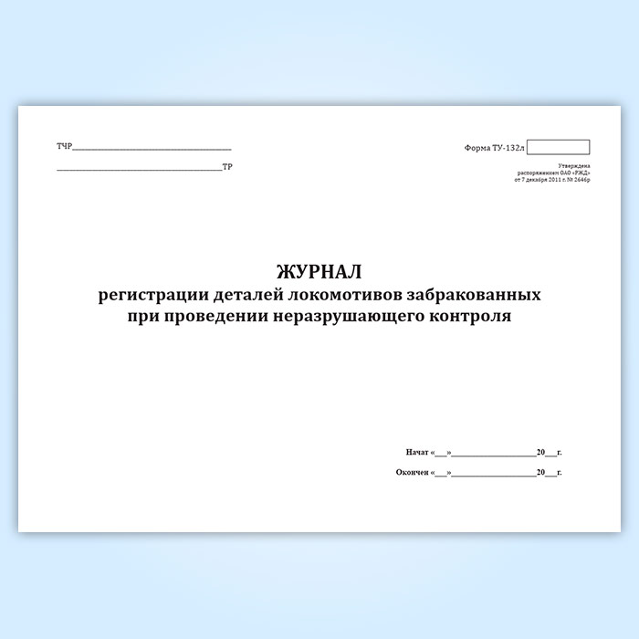 Журнал регистрации деталей локомотивов, забракованных при проведении неразрушающего контроля (форма ТУ-132л) в Фрязино купить