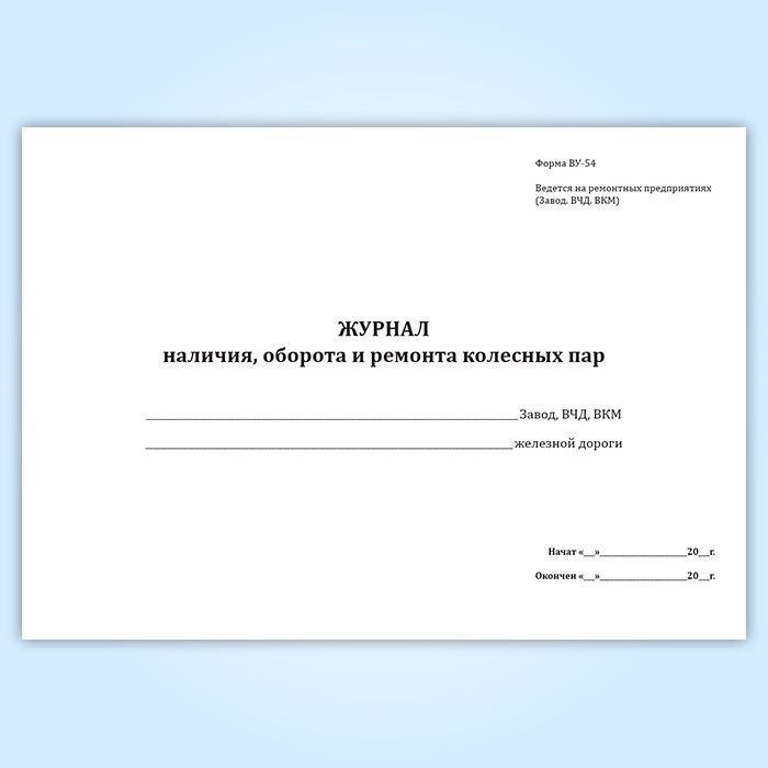 Журнал учета наличия, оборота и ремонта колесных пар (форма ВУ-54) в Фрязино купить