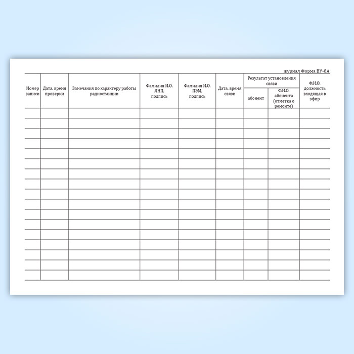 Журнал работы поездной радиостанции (форма ВУ-8А) в Фрязино купить