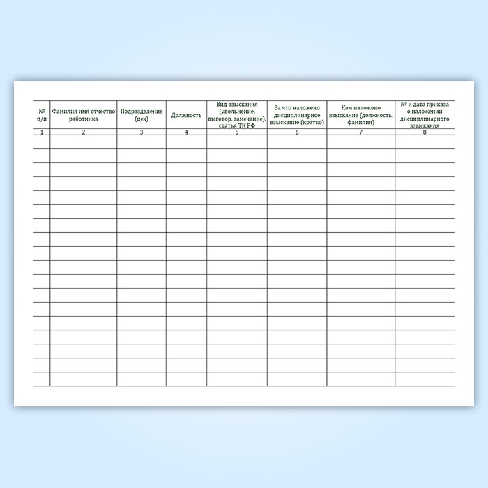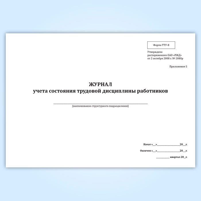 Журнал учета состояния трудовой дисциплины работников (форма ТТУ-8) в Фрязино купить