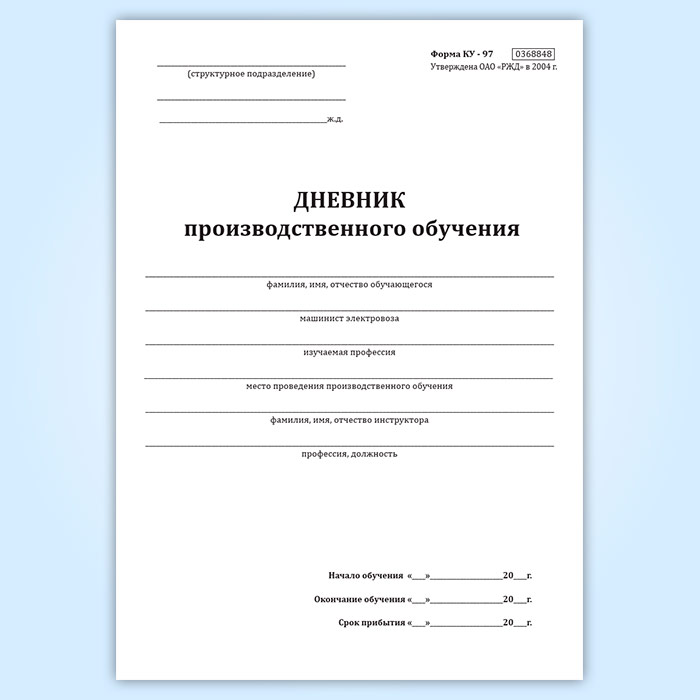Дневник производственного обучения (форма КУ-97) в Фрязино купить
