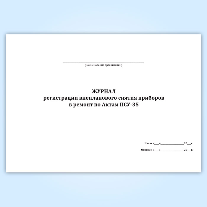 Журнал регистрации внепланового снятия приборов в ремонт по Актам ПСУ-35 в Фрязино купить