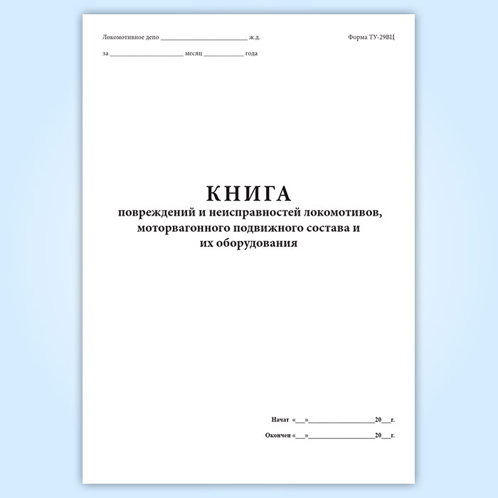 Книга повреждений и неисправностей локомотивов, моторвагонного подвижного состава и их оборудования (форма ТУ-29ВЦ) в Фрязино купить
