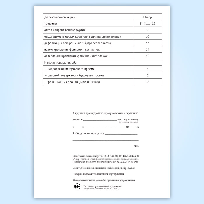 Журнал учета результатов осмотра и дефектоскопирования боковых рам тележек грузовых вагонов в Фрязино купить