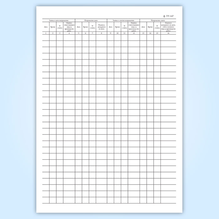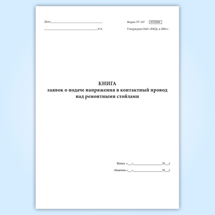 Книга заявок о подаче напряжения в контактный провод над ремонтными стойлами (форма ТУ-147) в Фрязино купить