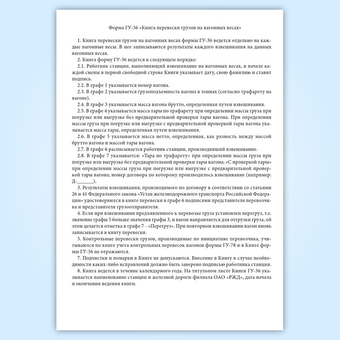 Книга перевески грузов на вагонных весах (форма ГУ-36) в Фрязино купить