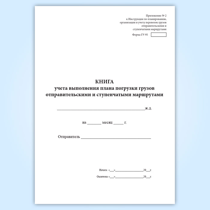 Книга учета выполнения плана погрузки грузов отправительскими и ступенчатыми маршрутами (форма ГУ-95) в Фрязино купить