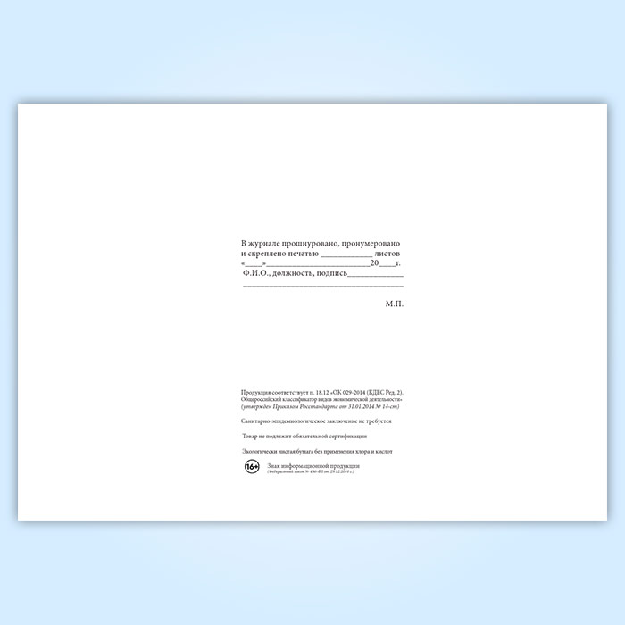 Вы получаете печатную продукцию прошнурованной и c местом для вашей печати в соответствии с действующими нормативными документами: