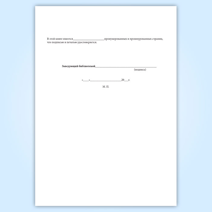 Вы получаете печатную продукцию прошнурованной и c местом для вашей печати в соответствии с действующими нормативными документами: