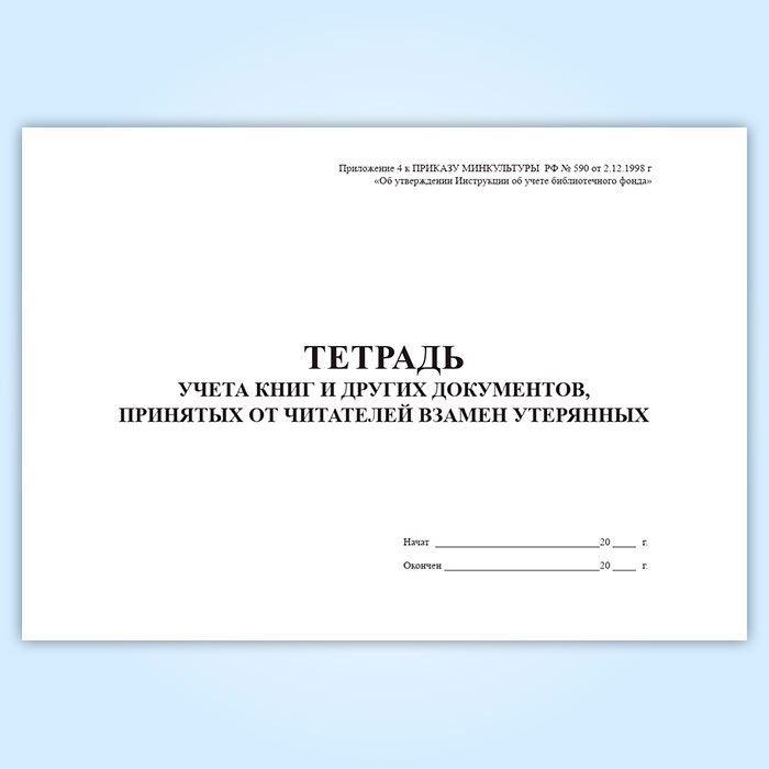 Тетрадь учета книг и других документов, принятых от читателей взамен утерянных в Фрязино купить