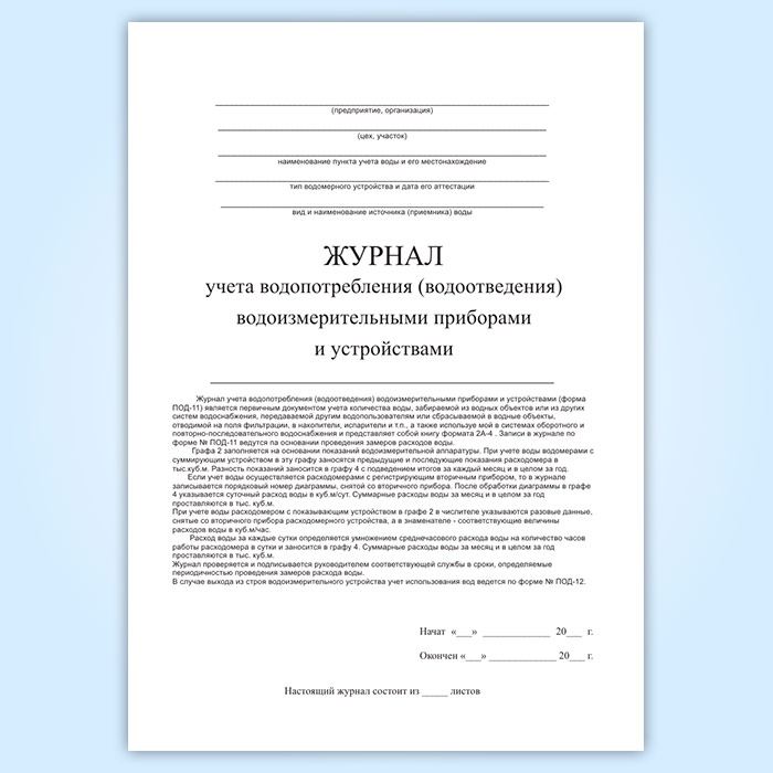 Журнал учета водопотребления (водоотведения) водоизмерительными приборами и устройствами (форма ПОД-11) в Фрязино купить