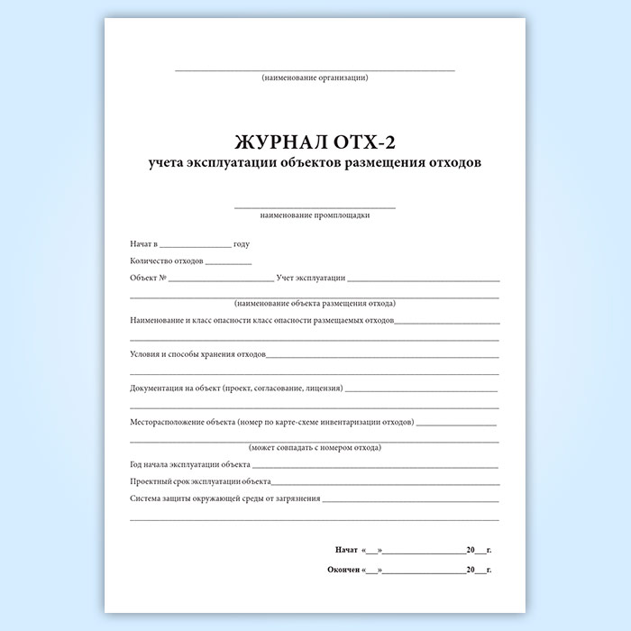 Журнал учета эксплуатации объектов размещения отходов ОТХ-2 в Фрязино купить