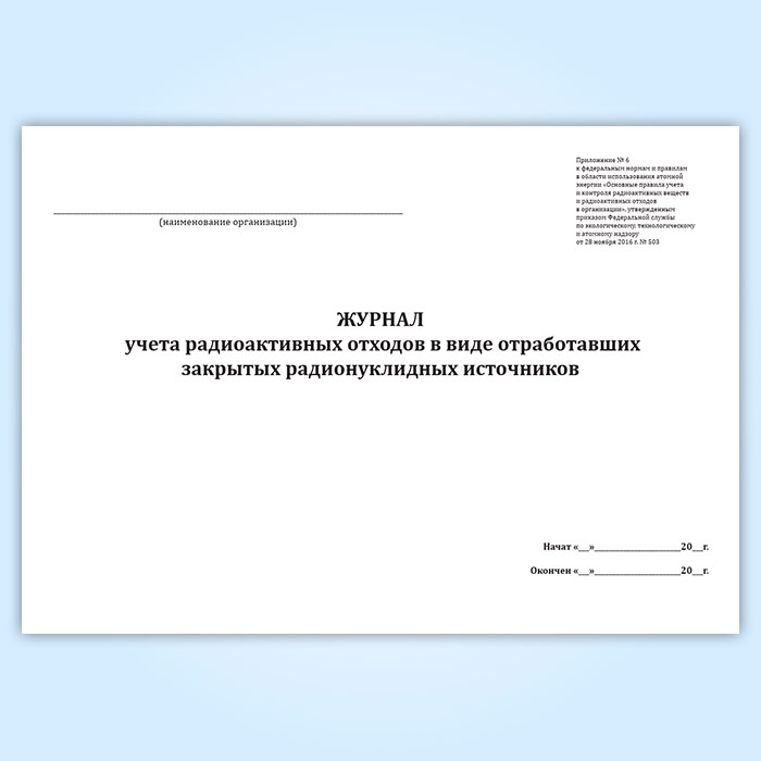 Журнал учета радиоактивных отходов в виде отработавших закрытых радионуклидных источников в Фрязино купить