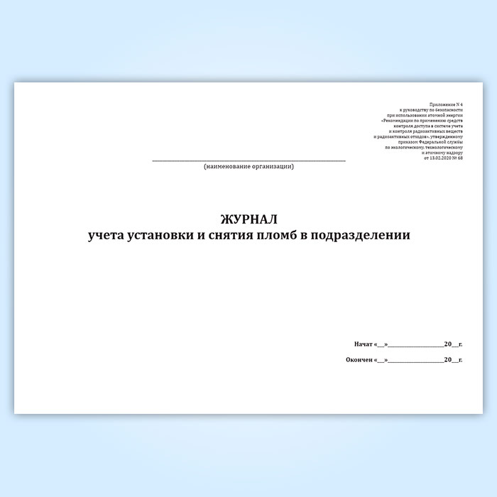 Журнал учета установки и снятия пломб в подразделении в Фрязино купить