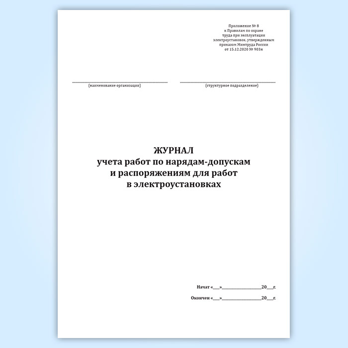 Журнал учета работ по нарядам-допускам и распоряжениям для работы в электроустановках в Фрязино купить