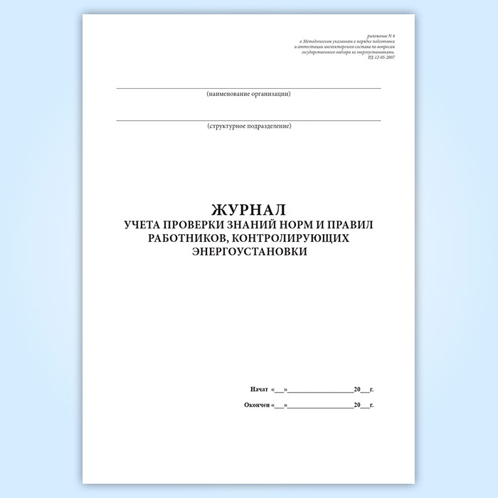 Журнал учета проверки знаний норм и правил работников, контролирующих энергоустановки в Фрязино купить