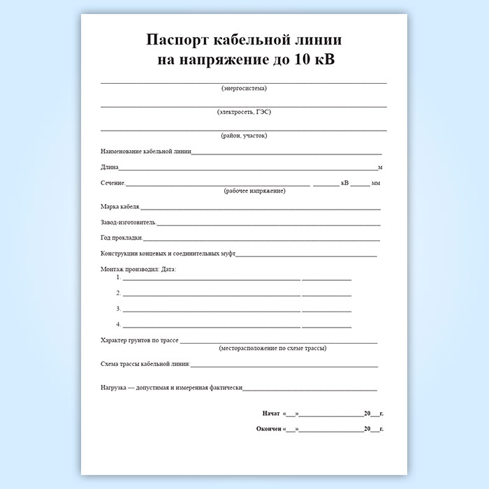 Паспорт кабельной линии на напряжение до 10 кВ в Фрязино купить