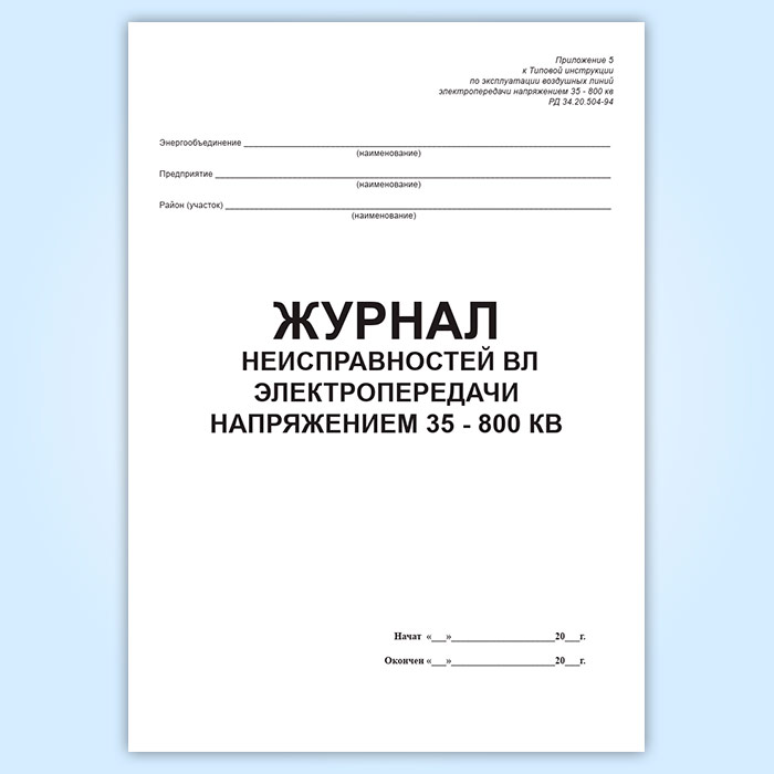 Журнал учета работ на ВЛ электропередачи напряжением 35-800 квВ в Фрязино купить