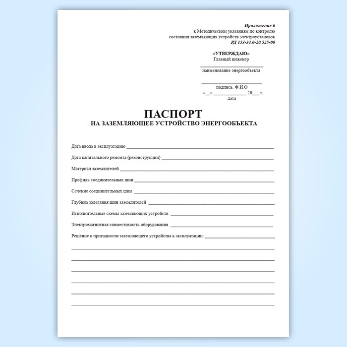 Паспорт на заземляющее устройство энергообъекта в Фрязино купить