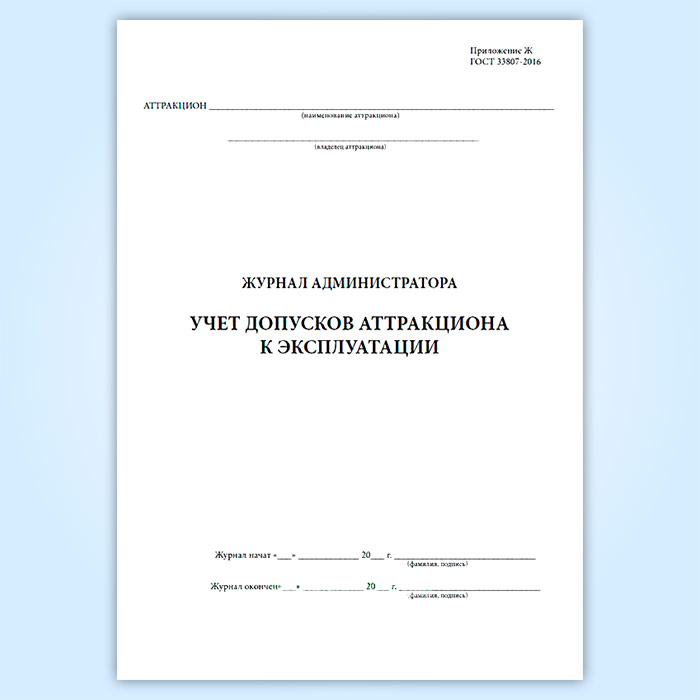 Журнал администратора. Учет допусков аттракциона к эксплуатации в Фрязино купить