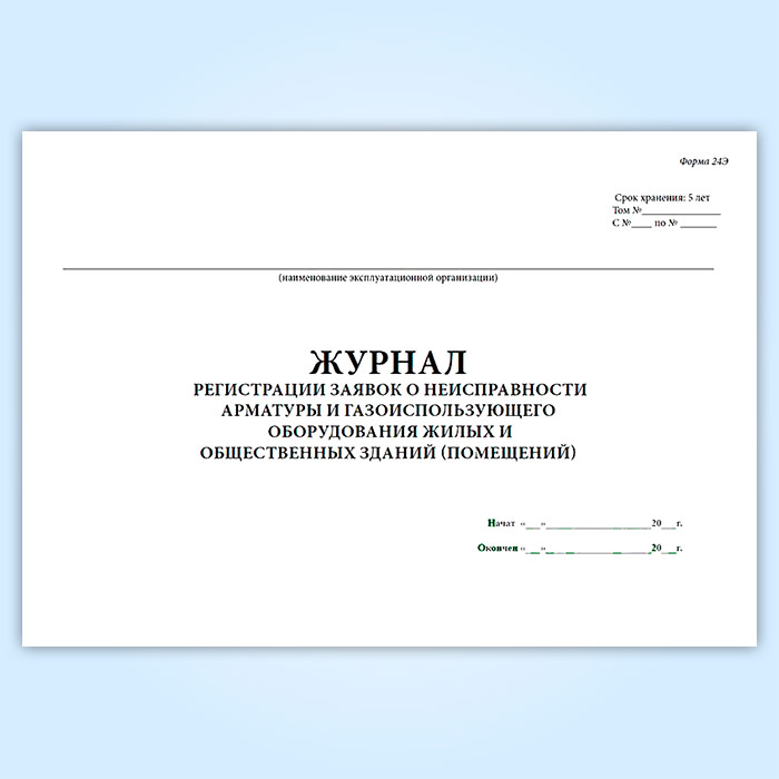 Журнал регистрации заявок о неисправности арматуры и газоиспользующего оборудования жилых и общественных зданий (помещений) (форма 24Э) в Фрязино купить