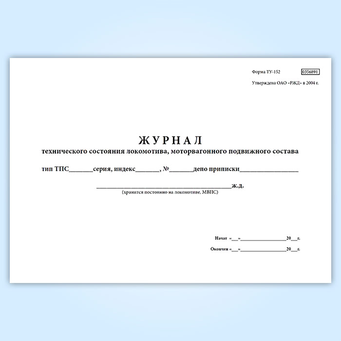 Журнал технического состояния локомотива, моторвагонного подвижного состава (форма № ТУ-152) в Фрязино купить