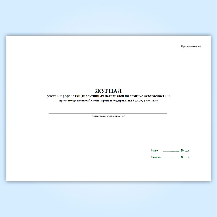 Журнал учета и проработки директивных материалов по технике безопасности и производственной санитарии предприятия (цеха, участка) в Фрязино купить