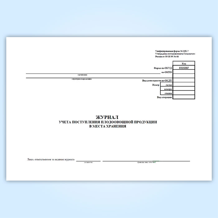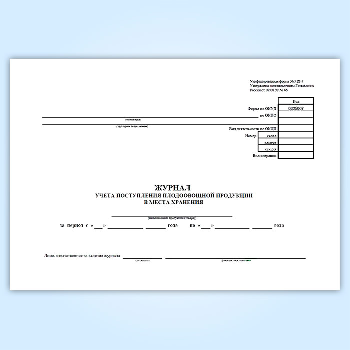 Журнал учета поступления плодоовощной продукции в места хранения (форма МХ-7) в Фрязино купить