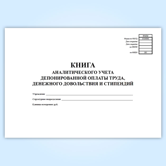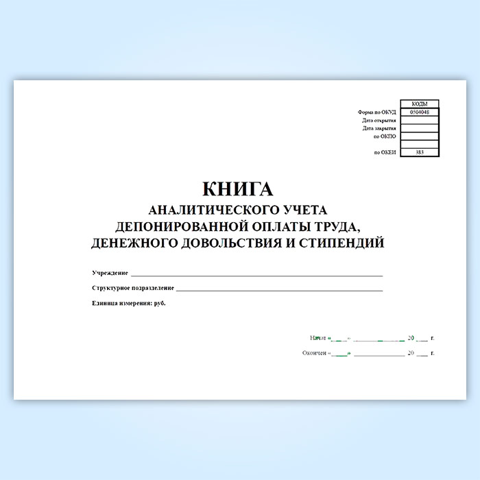 Книга аналитического учета депонированной заработной платы, денежного довольствия и стипендий (код формы 0504048) в Фрязино купить