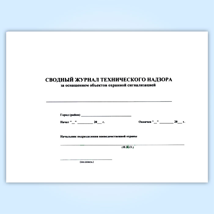Сводный журнал технического надзора за оснащением объектов охранной сигнализацией в Фрязино купить