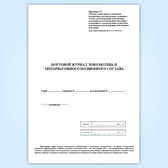 Бортовой журнал локомотива и моторвагонного подвижного состава в Фрязино купить