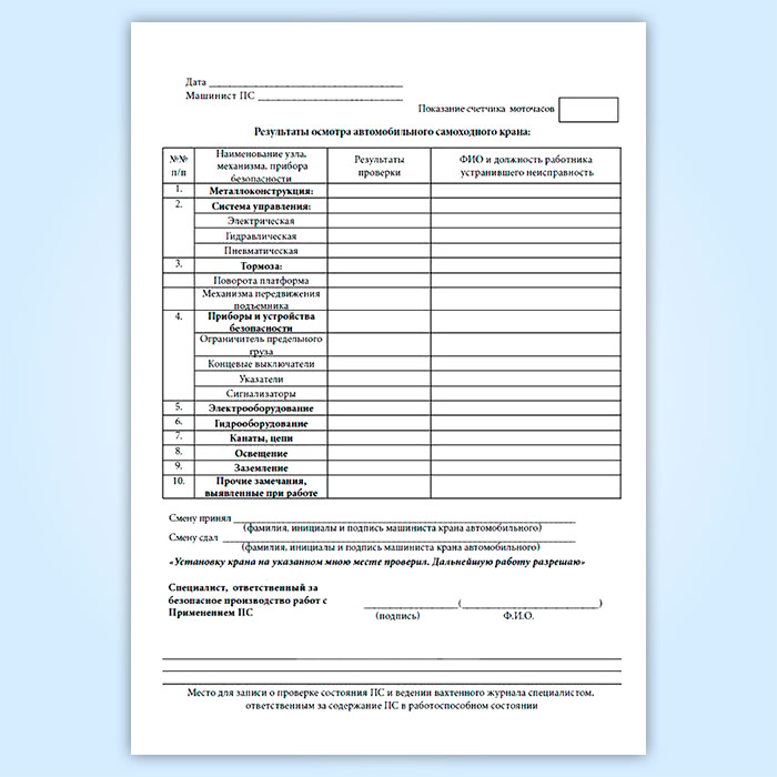 Вахтенный журнал машиниста автомобильного стрелового крана в Фрязино купить