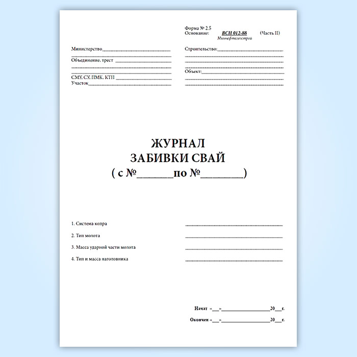 Журнал забивки свай (форма 2.5) в Фрязино купить