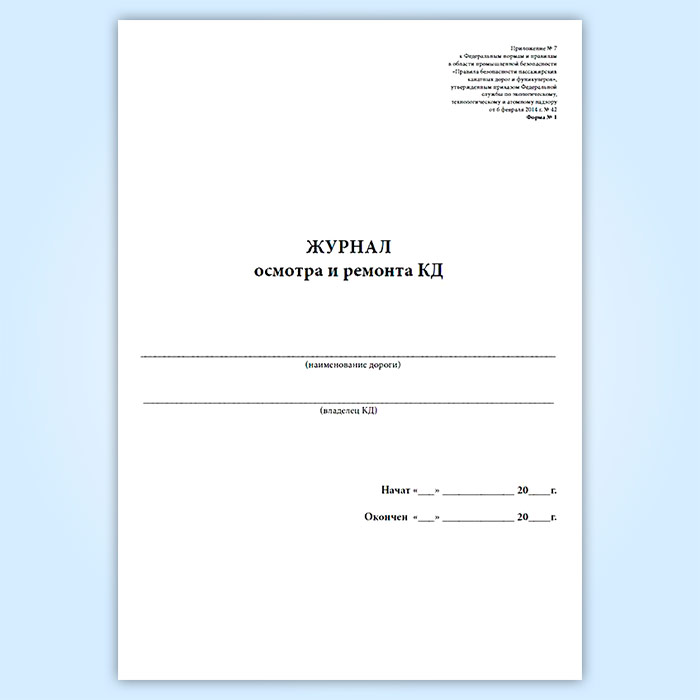 Журнал осмотра и ремонта канатной дороги. Несущий канат (форма № 1) в Фрязино купить