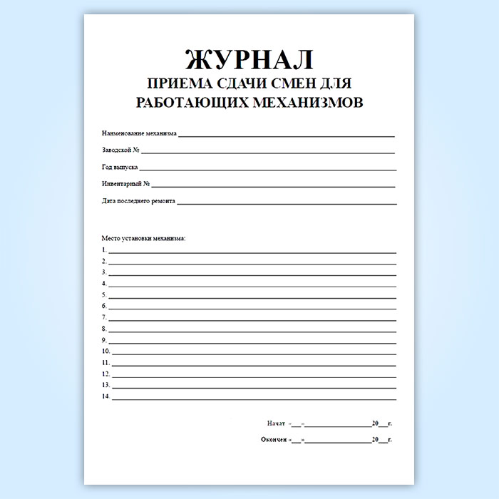 Журнал приема-сдачи смен для работающих на механизмах в Фрязино купить