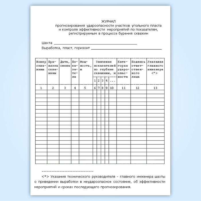 Журнал прогнозирования удароопасности участков угольного пласта и контроля эффективности мероприятий по показателям, регистрируемым в процессе бурения скважин в Фрязино купить