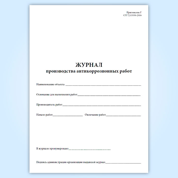 Журнал производства антикоррозионных работ в Фрязино купить
