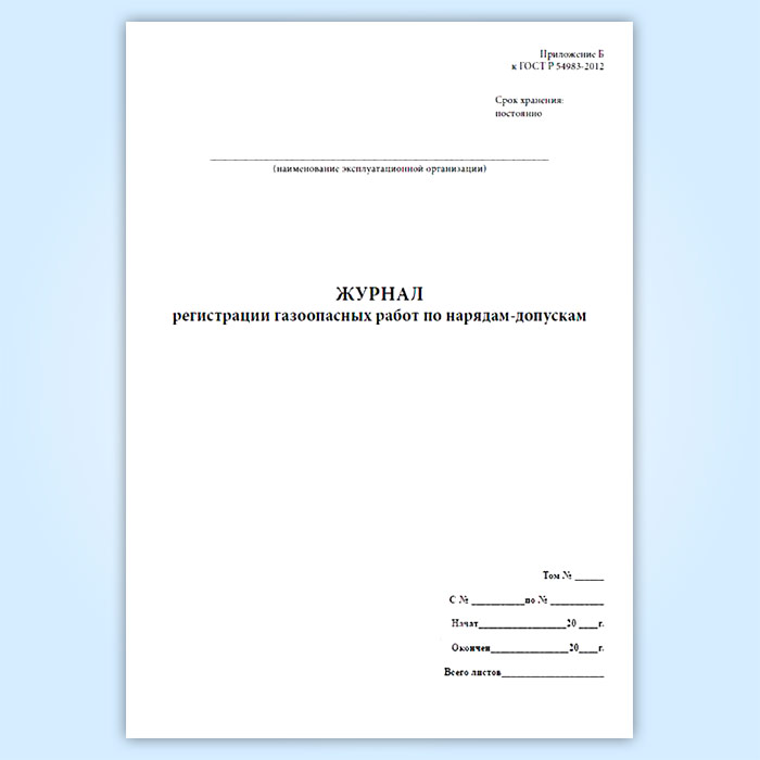 Журнал регистрации газоопасных работ по нарядам-допускам в Фрязино купить