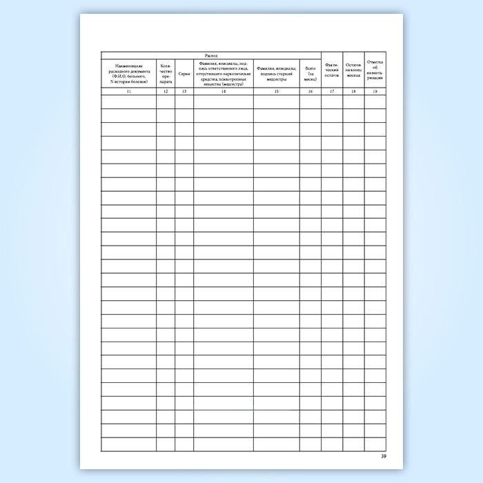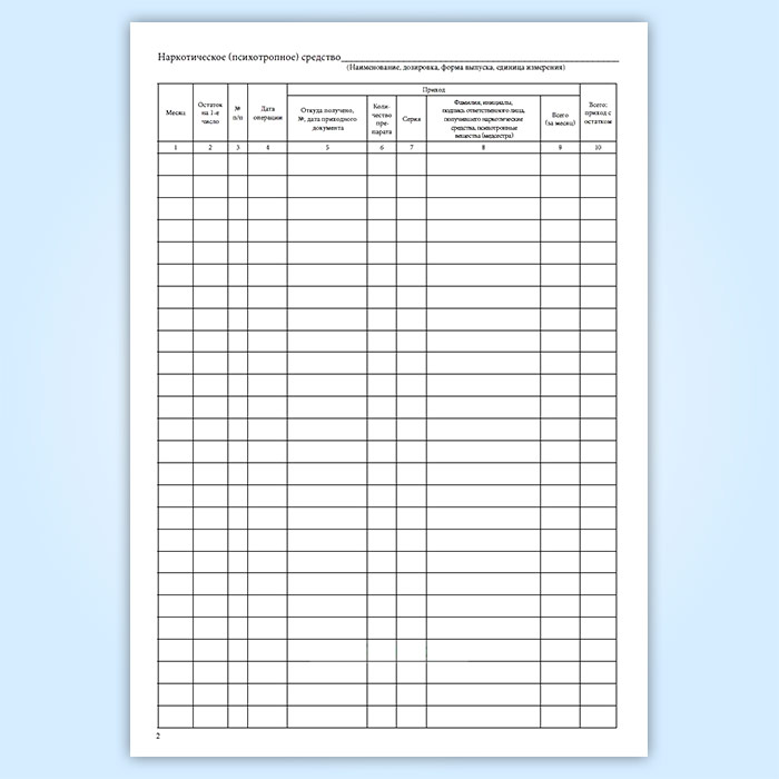 Журнал регистрации операций, связанных с оборотом наркотических средств и психотропных веществ дежурной (процедурной) медицинской сестры в стационарном отделении медицинской организации в Фрязино купить