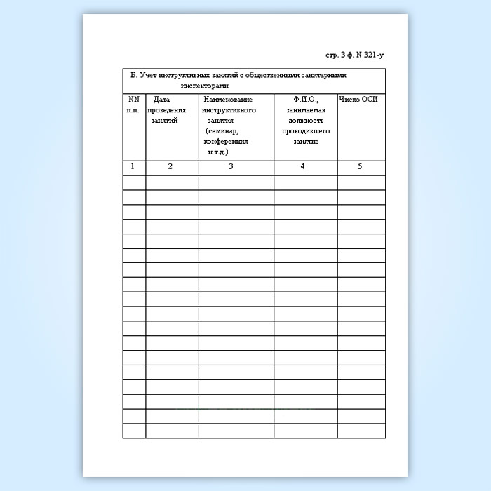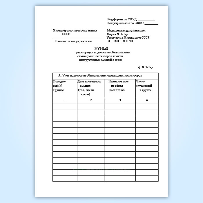 Журнал регистрации подготовки общественных санитарных инспекторов и числа инструктивных занятий с ними (форма № 321-у) в Фрязино купить