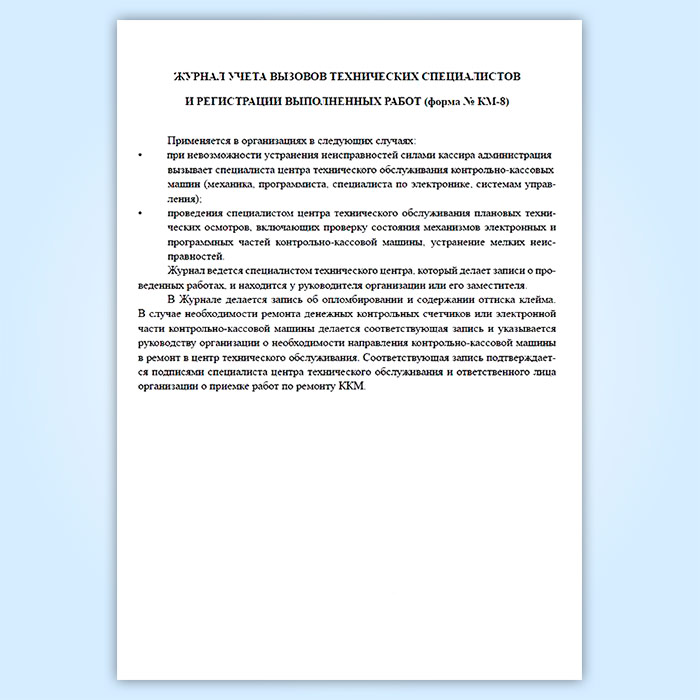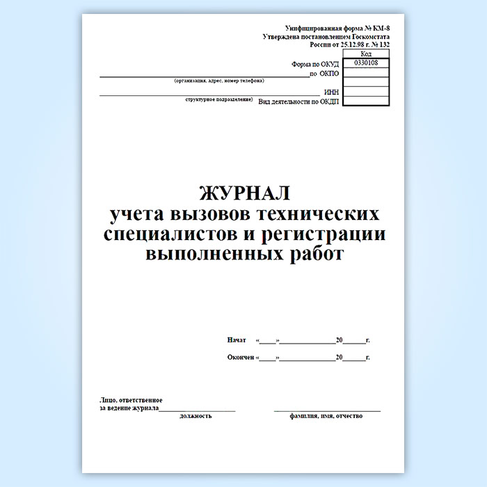 Журнал учета вызовов технических специалистов и регистрации выполненных работ (форма КМ-8) в Фрязино купить