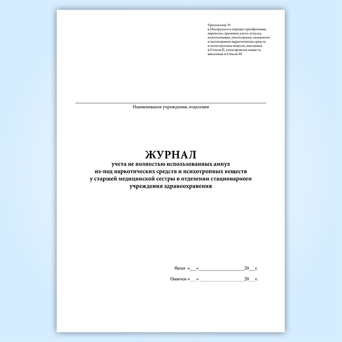 Журнал учета не полностью использованных ампул из-под наркотических средств и психотропных веществ у старшей медицинской сестры в отделении стационарного учреждения здравоохранения в Фрязино купить