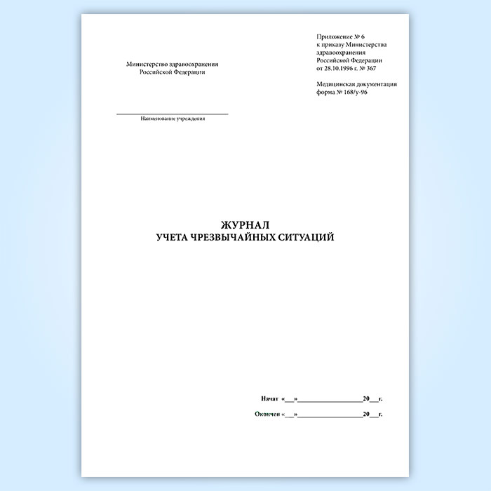 Журнал чрезвычайных ситуаций (форма № 168/у-96) в Фрязино купить