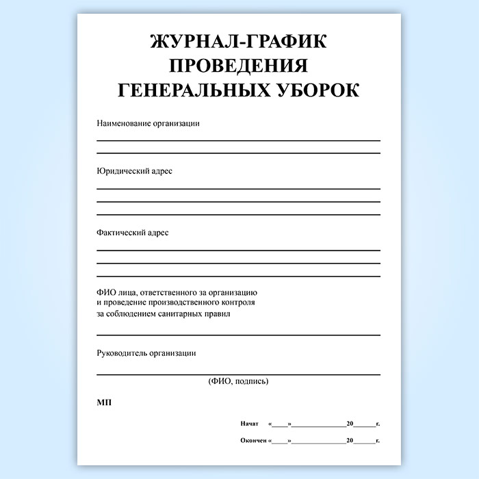 Журнал-график проведения генеральных уборок в Фрязино купить